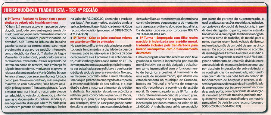 04.11.2008Jornal do Comércio: Jurisprudência Trabalhista