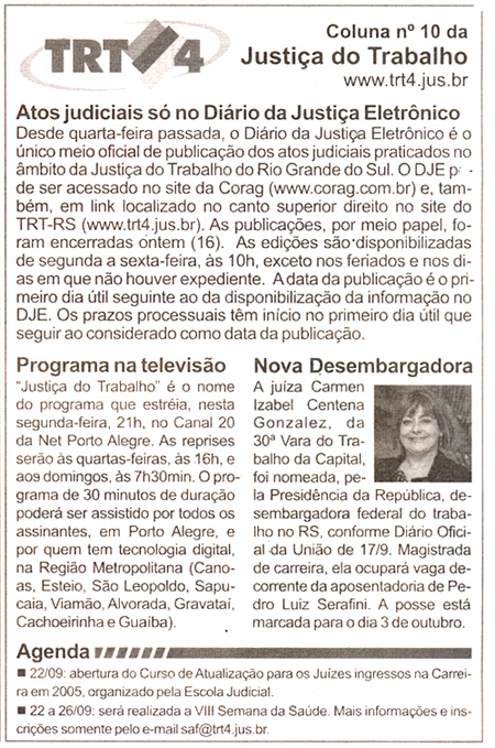 22.09.2008Coluna n° 10 da Justiça do Trabalho